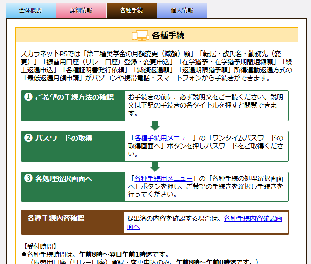 あとは画面の指示にしたがって、奨学金の残額を確認したり、口座情報を入力したり……